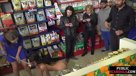 Humiliated slave predominated with petplay with voyeurs eyeing