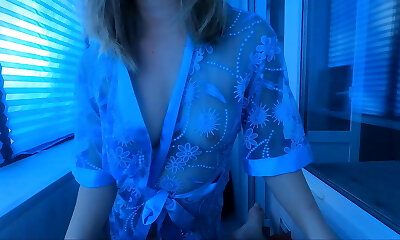 Fabulous ash-blonde girl can't take her eyes off of his ginormous shaft