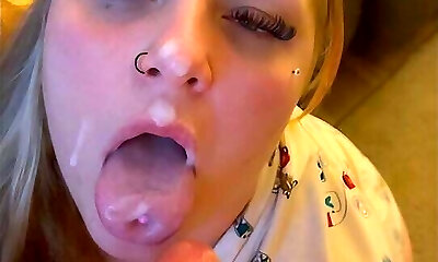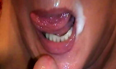 Blowjob Sloppy Cum in Mouth - Great Blow-job Close-up from Married Mega-slut Mature MILF Housewife