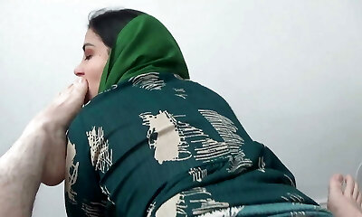 Arab Stepmom Come from office & takes off hijab & burqa & rests on sofa Then sonny tickles her Cunny & helps her orgasm - Lovemaking